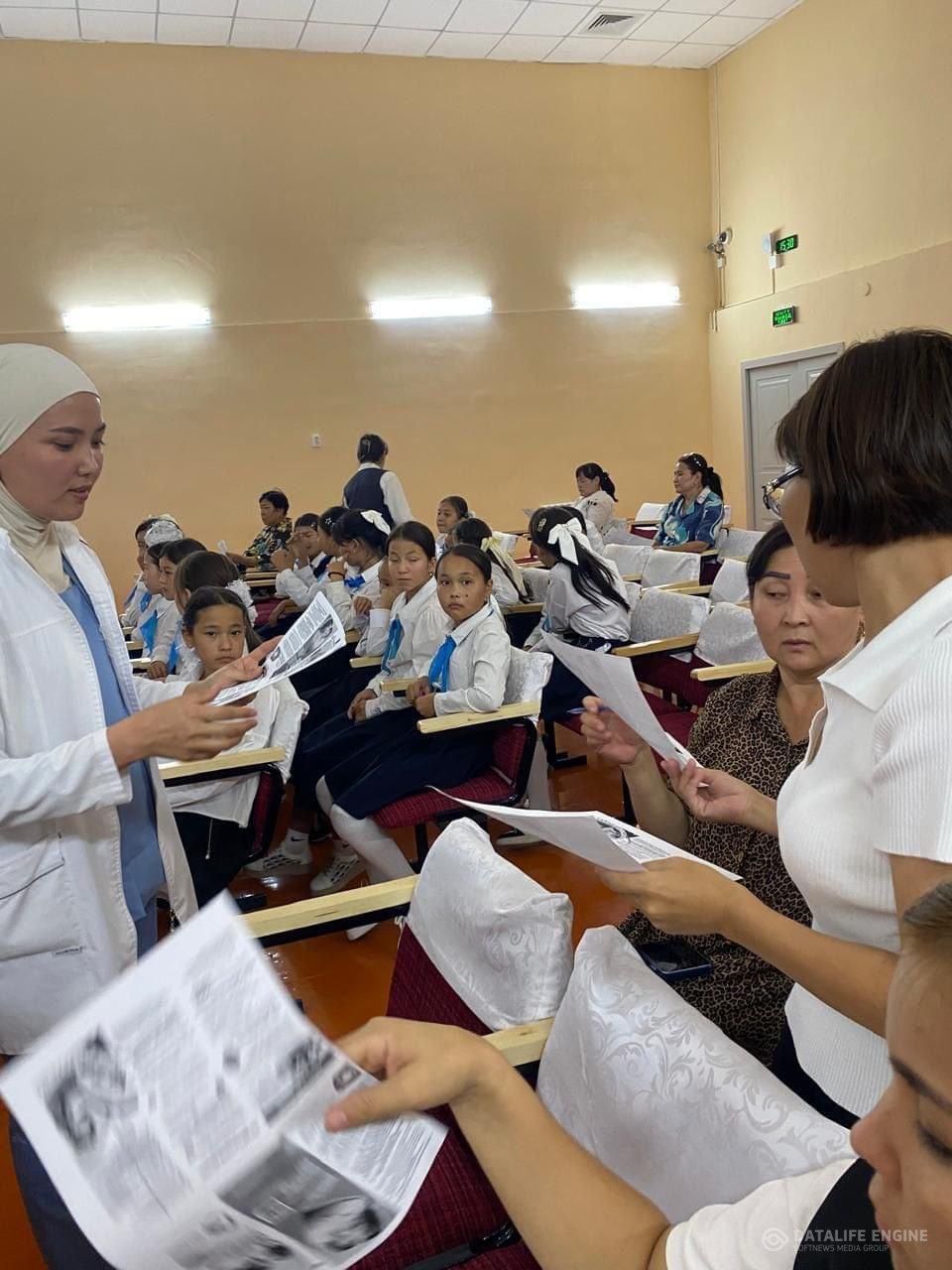 Шымкент қаласы Білім Басқармасына қарасты N66 " Қазығұрт" жалпы орта білім беретін мектебінде 2024 жылдың 0 4 қыркүйек күні N11 қалалық емханасының дәрігелерімен “Адам папиллома вирусына қарсы вакцинация” тақырыбында 11 жасар (2013жылғы қыз) оқушылармен ата-аналарға түсіндірме жұмысы бойынша жиналыс өткізілді.