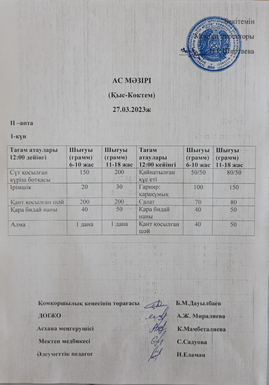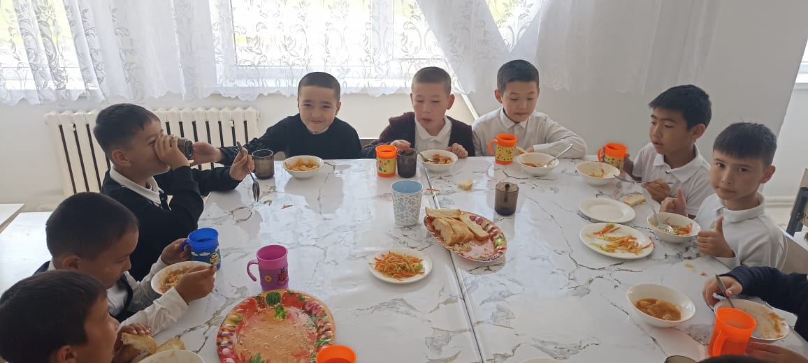 №66 «Қазығұрт» жалпы орта білім беретін мектебіндегі тегін ыстық тамақты ұйымдастыру. Бала денсаулығын, оның дене және ақыл-ой дамуын анықтайтын бағыттардың бірі өскелең ұрпақты сапалы тамақтандыруды ұйымдастыру болып табылады. Дұрыс ұйымдастырылған тамақтандыру оқушылардың денсаулығын сақтауға көмектесетіні сөзсіз. №66 «Қазығұрт» жалпы орта білім беретін мектебіндегі білім алушылар саны- 2167. Оның ішінде аз қамтылған отбасы балалары саны 736. Бастауыш сыныпта оқитын білім алушылар саны 853 толық ыстық тамақпен қамтылған. Асхананың кезекшілік кестесі құрылып, белгіленген уақыт бойынша білім алушылар уақытында тамақтанады. 5-11 сыныптар асханаға екінші және төртінші сабақтан кейін 15 минуттық үзілісте тамақтануға барады. Жалпы күнделікте 1341 оқушы ыстық тамақпен қамтылған. Мектептік тамақтандыру » «Қазығұрт» № 66 жалпы орта мектеп» (shymkent-mektebi.kz)