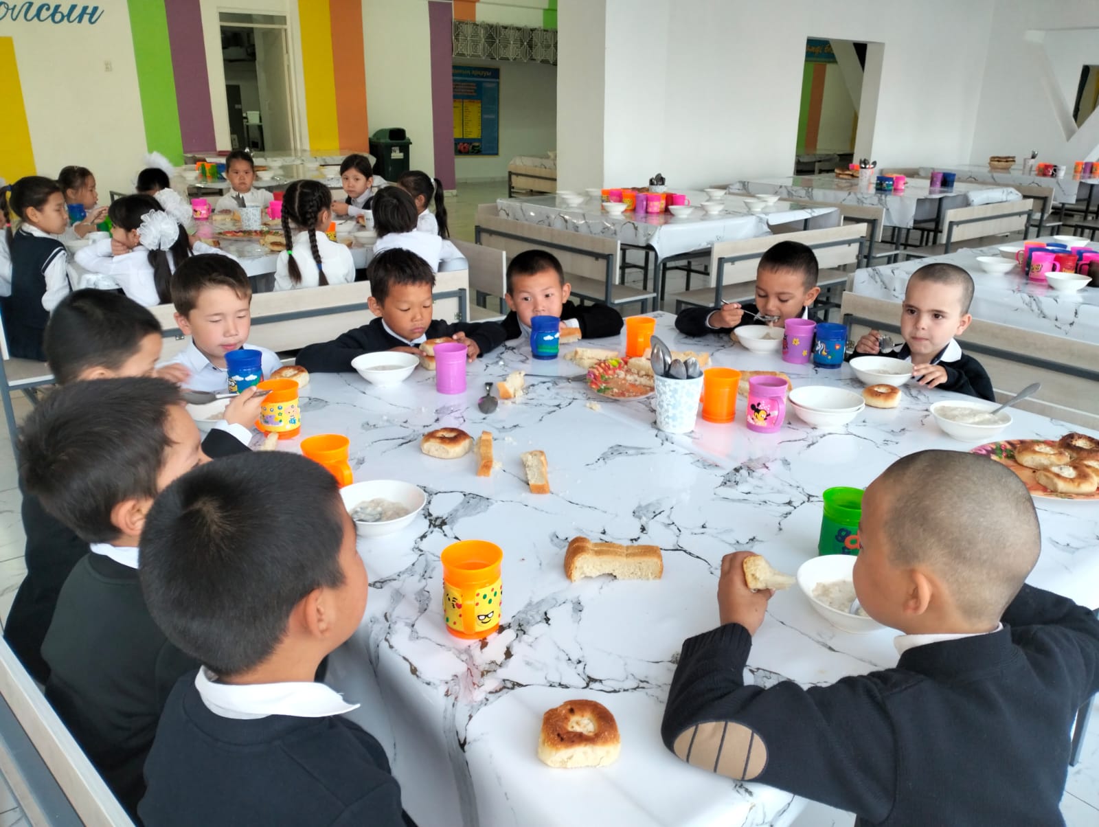 №66 «Қазығұрт» жалпы орта білім беретін мектебіндегі тегін ыстық тамақты ұйымдастыру. Бала денсаулығын, оның дене және ақыл-ой дамуын анықтайтын бағыттардың бірі өскелең ұрпақты сапалы тамақтандыруды ұйымдастыру болып табылады. Дұрыс ұйымдастырылған тамақтандыру оқушылардың денсаулығын сақтауға көмектесетіні сөзсіз. Мектебімізде аз қамтылған отбасы балалары саны 736. Бастауыш сыныпта оқитын білім алушылар саны 853 толық ыстық тамақпен қамтылған. Асхананың кезекшілік кестесі құрылып, белгіленген уақыт бойынша білім алушылар уақытында тамақтанады. 5-11 сыныптар асханаға екінші және төртінші сабақтан кейін 15 минуттық үзілісте тамақтануға барады. Мектептік тамақтандыру » «Қазығұрт» № 66 жалпы орта мектеп» (shymkent-mektebi.kz)