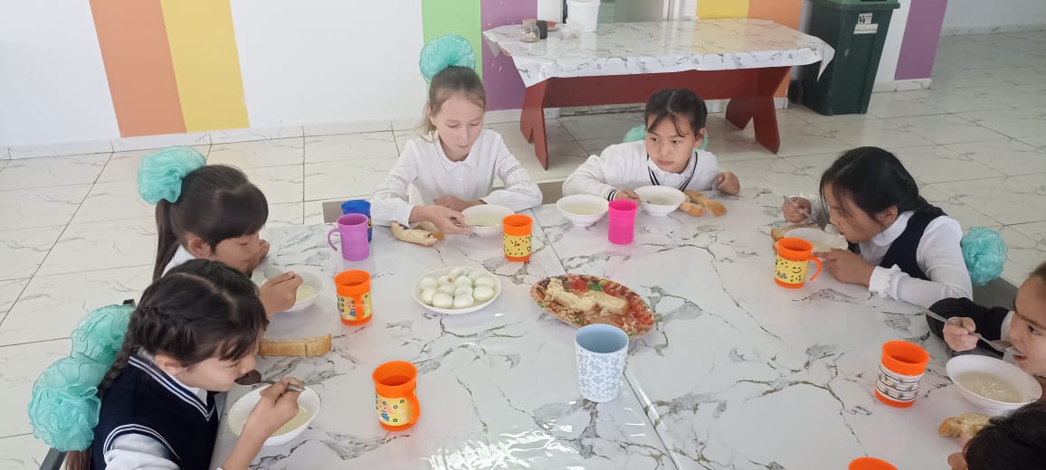 №66 «Қазығұрт» жалпы орта білім беретін мектебіндегі тегін ыстық тамақты ұйымдастыру. Бала денсаулығын, оның дене және ақыл-ой дамуын анықтайтын бағыттардың бірі өскелең ұрпақты сапалы тамақтандыруды ұйымдастыру болып табылады. Дұрыс ұйымдастырылған тамақтандыру оқушылардың денсаулығын сақтауға көмектесетіні сөзсіз. №66 «Қазығұрт» жалпы орта білім беретін мектебіндегі қазіргі таңда білім алушылар саны- 2162. Оның ішінде аз қамтылған отбасы балалары саны 736. Бастауыш сыныпта оқитын білім алушылар саны 853 толық ыстық тамақпен қамтылған. Асхананың кезекшілік кестесі құрылып, белгіленген уақыт бойынша білім алушылар уақытында тамақтанады. 5-11 сыныптар асханаға екінші және төртінші сабақтан кейін 15 минуттық үзілісте тамақтануға барады. Күнделік ішіндегі MektepMenu бөліміне күнделікті ас мәзірі жас ерекшелігіне сәйкес суреттімен толық салынады.