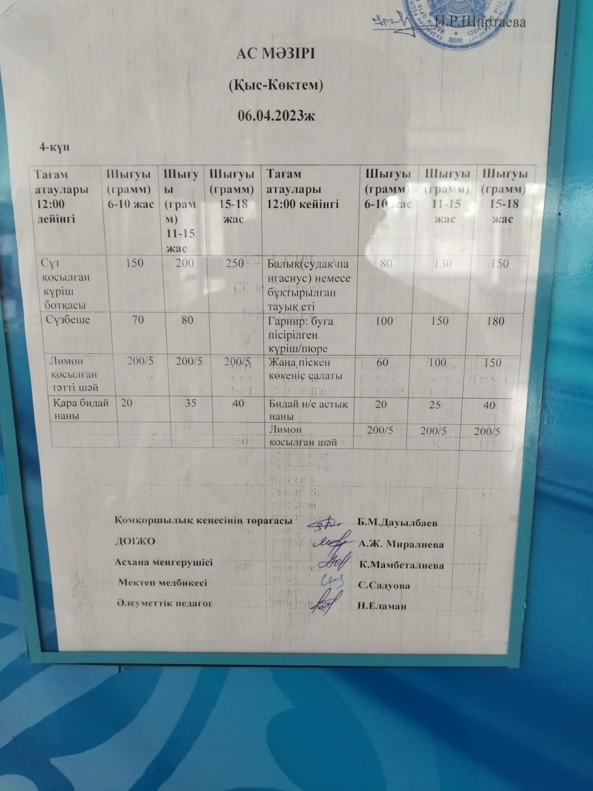 Ыстық тамақ құжаттары (бұйрық, ас мәзірі)