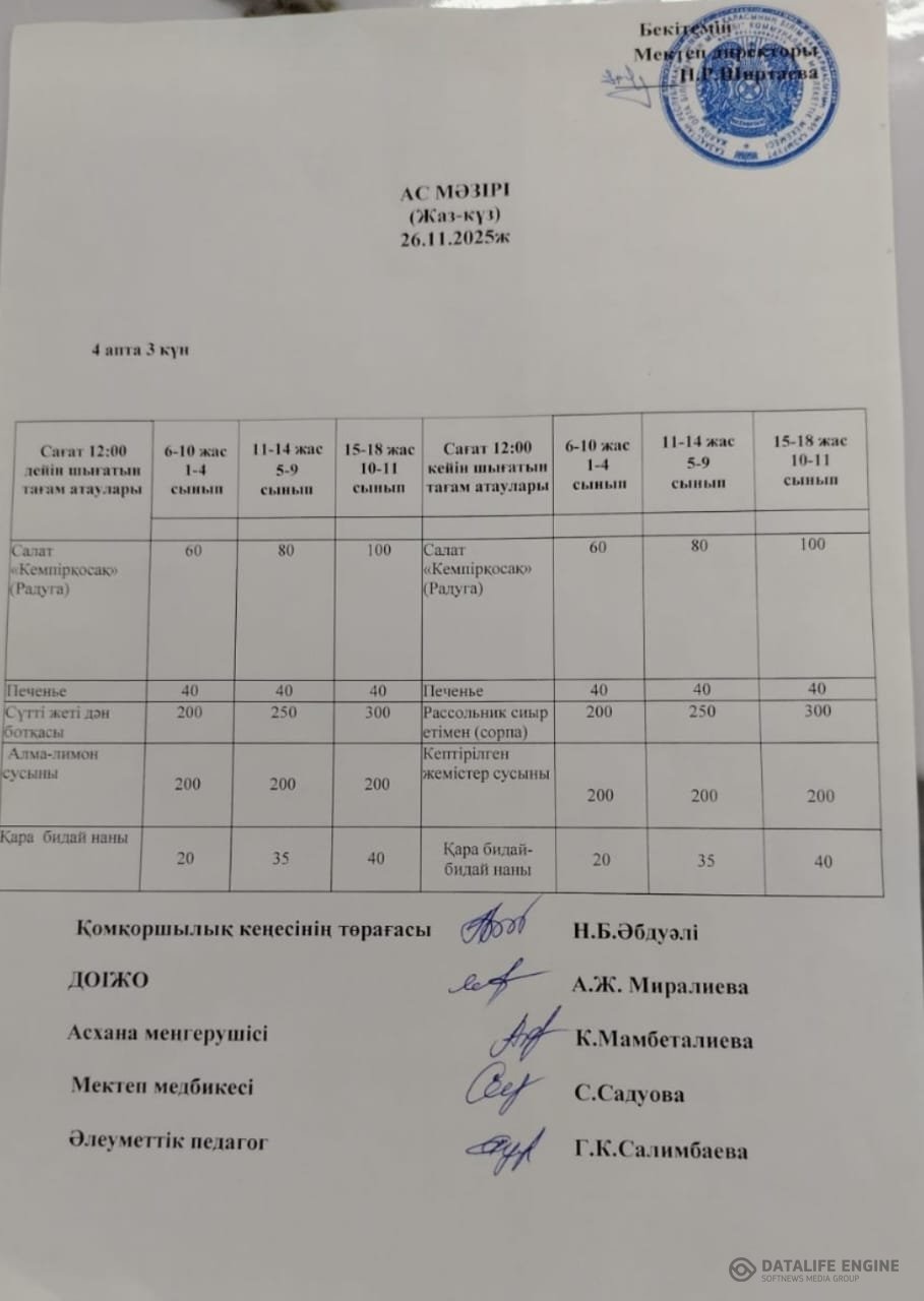 👩‍🍳 Балаларға күн сайын сапалы да құнарлы ас мәзіріне сай, бір реттік ыстық тамақ өз уақытында беріледі.