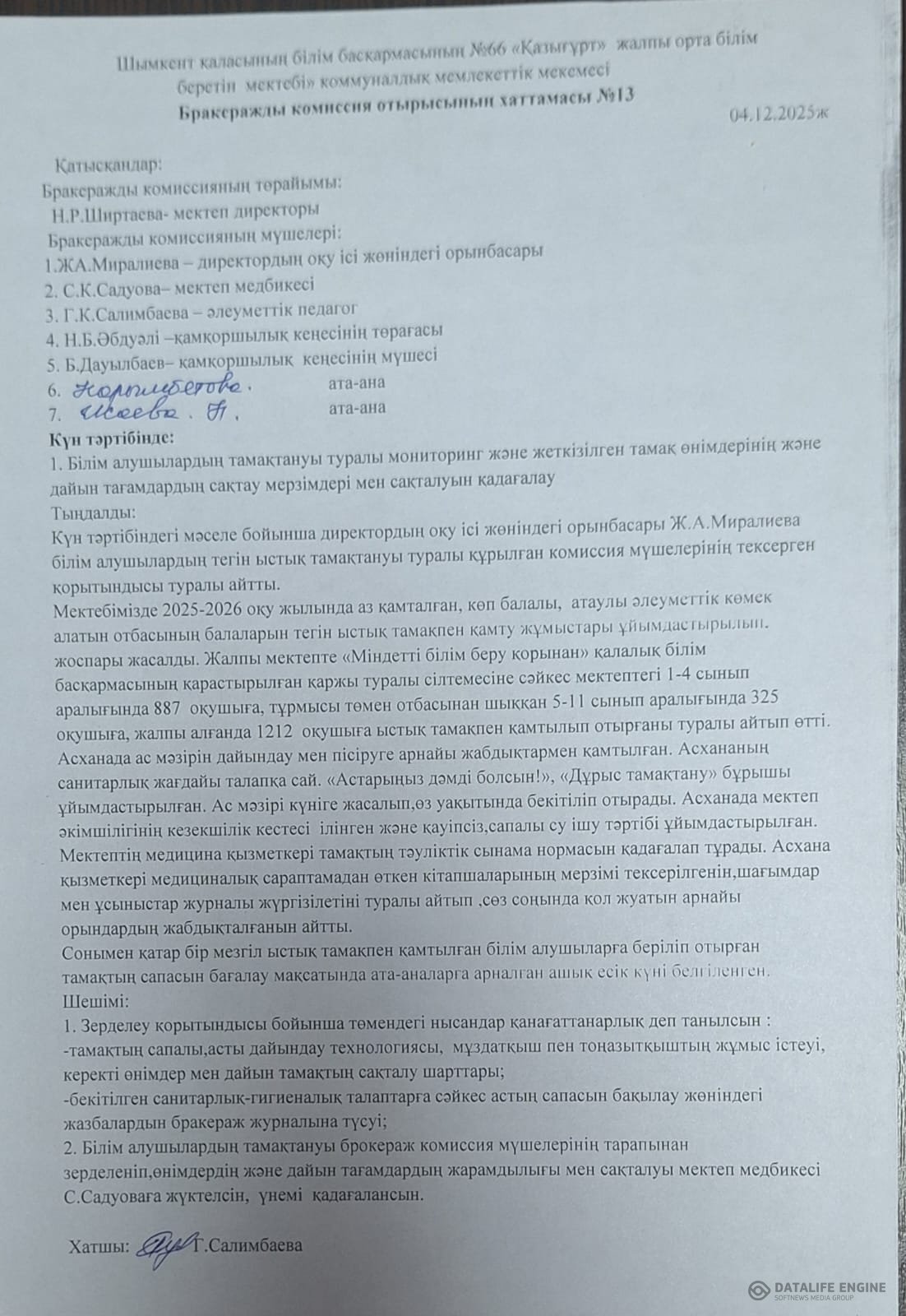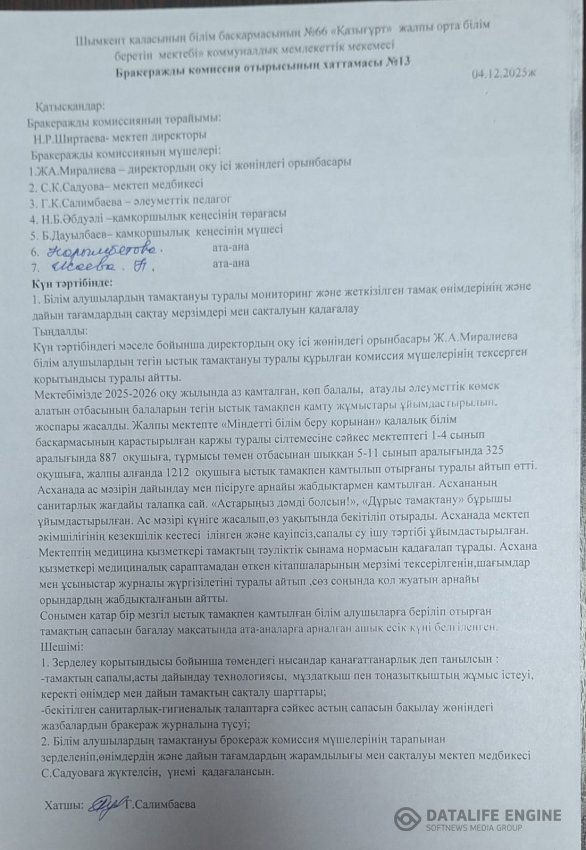 Бұл есеп бракераж комиссиясының құрамына кіретін ата-аналар комитетінің өкілдері арқылы оқушылардың ата-аналарына жеткізіледі.