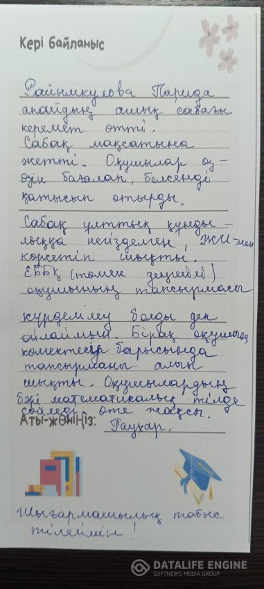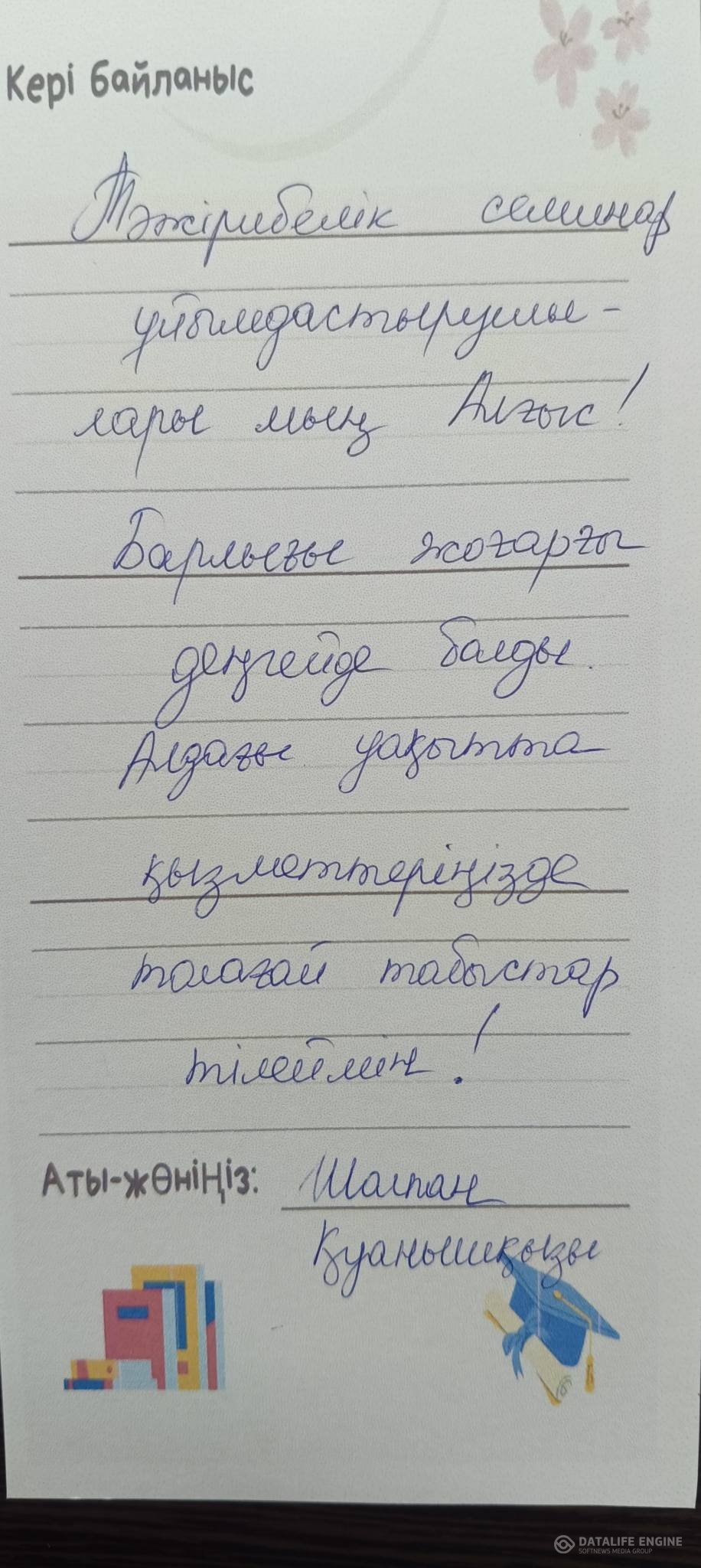 Шымкент қаласы Әдістемелік орталығының жұмыс жоспарына сәйкес, оқушыларды тәрбиелеу мен оқытуда ұлттық құндылықтарды басшылыққа алып, сапалы білім деңгейін көтеру, өмірлік мәселелерді шешу дағдыларын қалыптастыру мақсатында функционалдық сауаттылықты жасанды интеллект мүмкіндіктерімен ұштастыра дамыту бағытында Білім басқармасының 17.11.2025 жылғы №381 хаты негізінде 2025 жылдың 19 қарашасы күні №66 «Қазығұрт» жалпы орта білім беретін мектебінде тәжірибелік семинар ұйымдастырылып, жоғары деңгейде өткізілді.